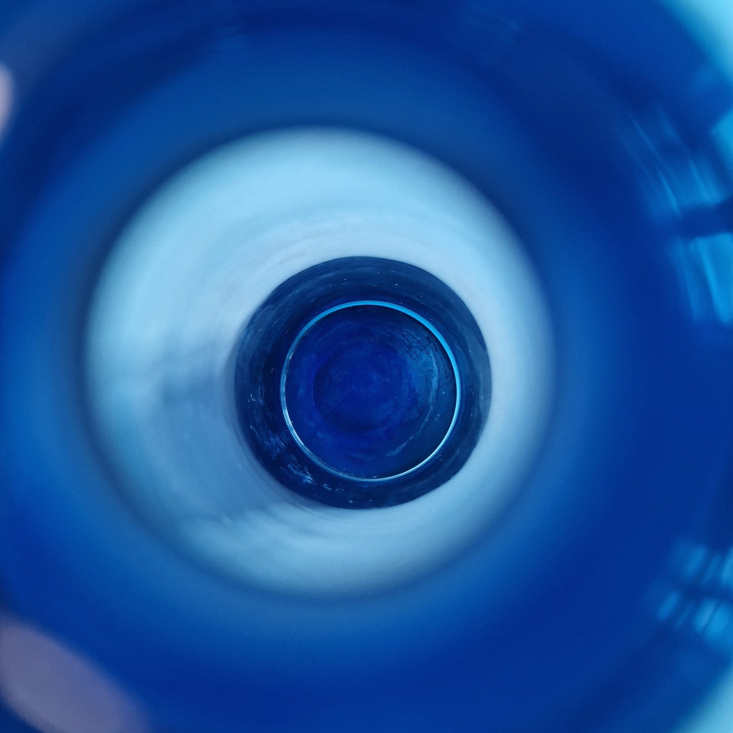 Den dybe blå farve fremhæver glassets transparens og skaber et fint farvespil i lyset. Vasen er velegnet til enkelte blomstergrene, men fungerer også smukt som dekorativt objekt i sig selv – eksempelvis på en hylde, i en vindueskarm eller som del af et stilleben.
